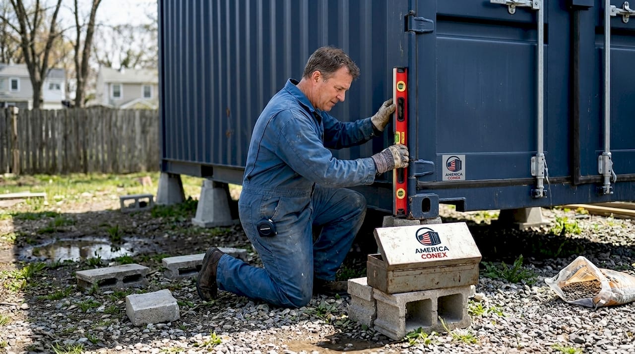 Elevation is the most critical factor. Foundation options for containers confirm that gravel pads and concrete piers provide the best balance of cost and stability, while also keeping the container base off the ground to prevent rust. A container sitting directly on soil will corrode faster than one elevated even a few inches.