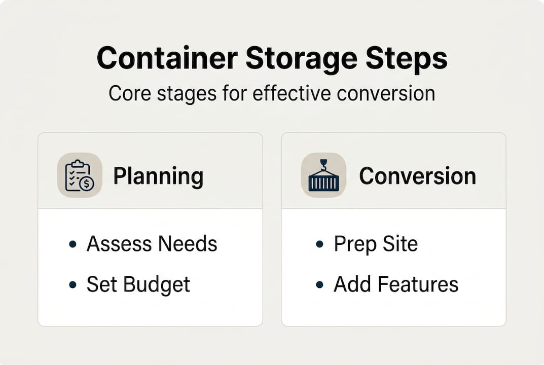Running out of space is frustrating. Whether you're stacking boxes in your garage, renting a unit across town, or watching weather slowly ruin tools left outside, the problem is real and expensive. Shipping containers offer something different: steel-reinforced, weatherproof storage you can place on your own property. A well-converted container can give you more usable space than most garages, at a fraction of what a traditional build costs. This guide walks you through every step of a successful container storage conversion, from choosing the right unit to laying the foundation, adding modifications, and avoiding the mistakes that cost people thousands.