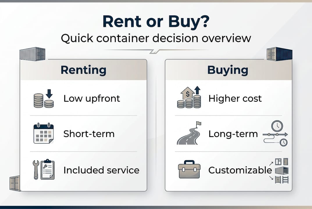 Most business owners assume buying a shipping container is always the smarter financial move. That assumption can cost you. The real answer depends on factors most decision guides skip entirely: project duration, site access, local permit requirements, and how much operational flexibility you actually need. Renting and buying each have a strong case, and picking the wrong one can mean thousands of dollars in unexpected costs or a container that doesn't fit your workflow. This guide breaks down the full picture so you can make a confident, well-informed decision for your operation.